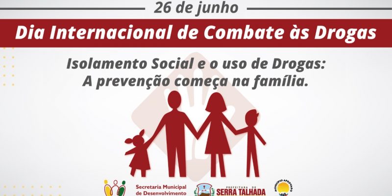 A Secretaria Municipal de Desenvolvimento Social e Cidadania de Serra Talhada, através do Centro de Assistência à usuários de Drogas – CAUD, realiza no período de 26 de junho a 04 de julho uma importante campanha com o objetivo diminuir os impactos do consumo de drogas lícitas e ilícitas por crianças e adolescentes, tendo como tema “Isolamento Social e o uso de Drogas: a prevenção começa na família”.