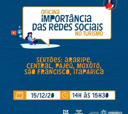 Uma ação conjunta entre a Empresa de Turismo de Pernambuco (Empetur) e a Secretaria Estadual de Turismo (Setur) capacitará secretários municipais de turismo e trades turísticos de todo o Sertão pernambucano nessa terça-feira, 15. As entidades vão realizar a 2ª edição da oficina virtual “A Importância das Redes Sociais para o Turismo”.