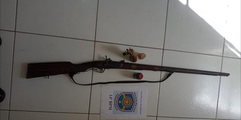 Com o imputado, foram apreendidos: 01 (uma) espingarda artesanal, 90 (noventa) espoletas, 300g (trezentos gramas) de chumbo e 50g (cinquenta gramas) de pólvora. Diante o exposto, o imputado, juntamente com o material apreendido, foi conduzido à DPC local para adoção das medidas cabíveis.