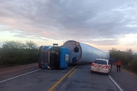 Um acidente envolvendo um caminhão que carregava um tubo de pá eólica e duas caminhonetes, registrado em Petrolina no fim da tarde dessa quarta-feira, 9, deixou duas pessoas mortas. As vítimas fatais estavam em uma das caminhonetes, atingida pelo caminhão que tombou no km 154 da BR-428.