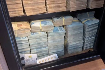 Imagens de divulgação da operação mostram a apreensão de um cofre superlotado com dinheiro de um dos alvos da investigação. A PF investiga possíveis fraudes que podem ter gerado prejuízo de R$ 8,1 milhões. São cumpridos 26 mandados de busca e dois de prisão temporária.