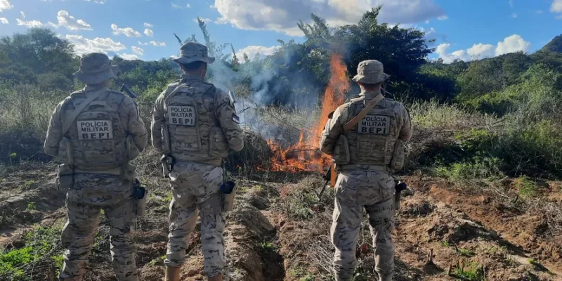 Durante a Operação Impacto, deflagrada na última quarta-feira, a Polícia Militar de Pernambuco localizou e incinerou uma plantação de maconha com 8.731 pés nas proximidades da Serra Vermelha, na zona rural de Serra Talhada, no Sertão.