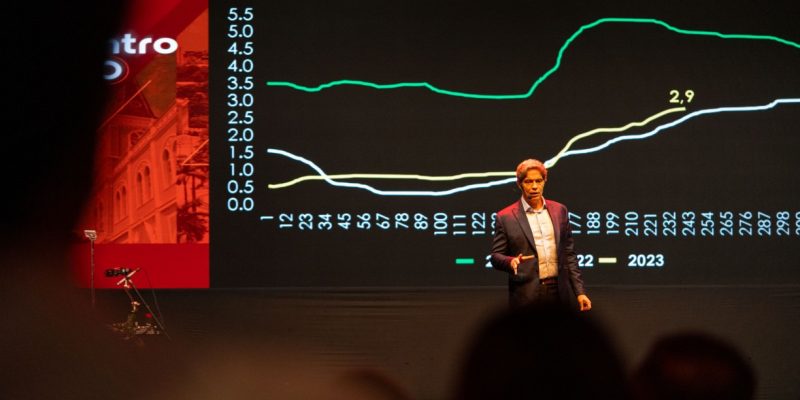Na palestra, Ricardo apresentou um retrospecto da economia brasileira, traçou paralelo com a realidade mundial e refletiu sobre os impactos dos fatores externos na realidade local. Pontuou, ainda, que o Brasil se destaca entre os mercados emergentes pelo risco geopolítico reduzido, aumentando o interesse de empresas globais. “O crescimento de renda e consumo é maior do que os países desenvolvidos”, colocou o economista.