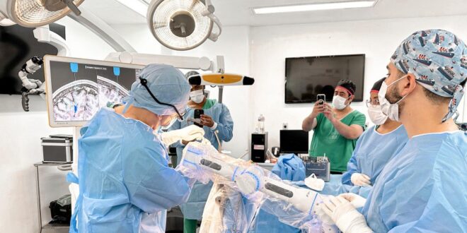 O procedimento foi possível graças a uma parceria com a empresa Brainlab, que desenvolveu o equipamento.