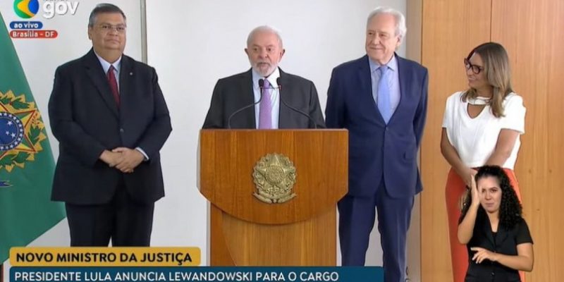 O presidente da República, Luiz Inácio Lula da Silva (PT), anunciou oficialmente, nesta quinta-feira (11), o nome do ex-ministro do Supremo Tribunal Federal (STF), Ricardo Lewandowski, para comandar o Ministério da Justiça e Segurança Pública (MJSP). Atualmente, a Pasta é liderada por Flávio Dino, que assumirá, em 22 de fevereiro, a cadeira deixada por Rosa Weber no Supremo Tribunal Federal (STF). Lewandowski se aposentou da Corte após completar 75 anos, em abril de 2023.