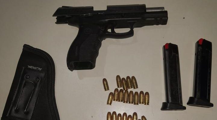 Entre elas, uma pistola Taurus 838 de polímero oxidado, calibre 380, dois carregadores e 31 munições intactas.