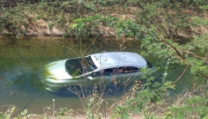 Um veículo de passeio foi parar dentro do canal próximo a um assentamento do Movimento dos Sem-Terra (MST), na área do Perímetro Irrigado Maria Tereza, Zona Rural de Petrolina, Sertão do São Francisco.