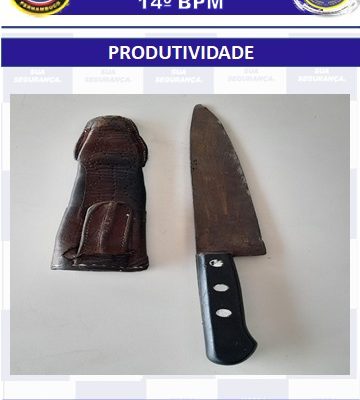 Na abordagem, a guarnição não encontrou nada com o suspeito. No entanto, ao ser realizada uma varredura no local, os policiais encontraram uma faca tipo peixeira.