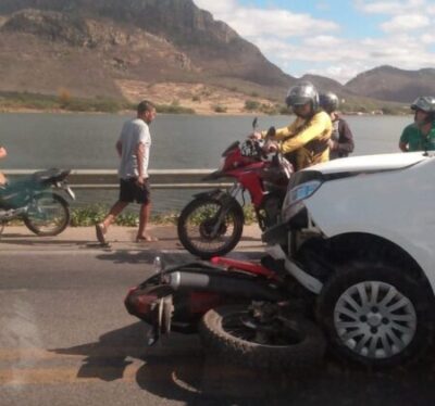 Grave colisão entre carro e moto deixa mulher inconsciente na BR-232, em Serra Talhada