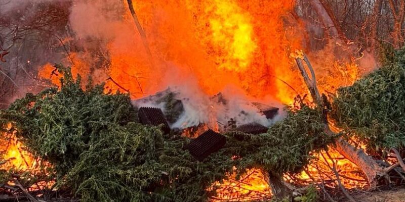 Foi retirada uma pequena amostra para ser apresentada na Delegacia de Polícia Civil e o restante do material foi incinerado no próprio terreno.