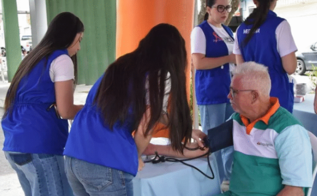 Educação em Saúde – orientações sobre o AVC, simulado com estudantes e aferição de pressão arterial, glicemia, pulso e IMC;