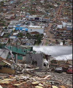 Um tornado com ventos de altíssima intensidade atingiu a cidade de Rio Bonito do Iguaçu, no Centro-Sul do Paraná, na noite desta sexta-feira (7), deixando um rastro de destruição e desespero. Segundo informações da Coordenadoria Estadual de Defesa Civil, o fenômeno natural deixou seis pessoas mortas, mais de 1.000 desalojadas e 28 desabrigadas.