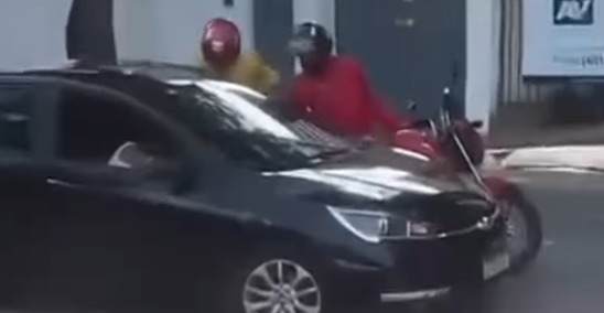 Um vídeo que circula nas redes sociais mostra a ação dos criminosos. É possível ver dois homens em uma moto se aproximando de um veículo preto, de onde retiram os itens para, em seguida, realizarem a fuga. O prejuízo total inclui um iPhone 17 Pro Max, um iPhone 17 Pro, uma corrente e uma aliança de ouro, além de diversas peças de reposição para celulares.