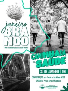 Nesta sexta-feira (30), a partir das 17h, a Prefeitura Municipal de Serra Talhada realiza a Caminhada da Saúde, saindo da Avenida Afonso Magalhães, em frente a AESET e seguindo até a praça Sérgio Magalhães, no centro da cidade. A iniciativa faz parte das ações realizadas durante o janeiro branco, mês de conscientização para o cuidado com a saúde mental.