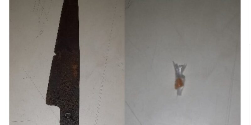 Em sua bolsa, foi localizada ainda uma faca tipo peixeira. O imputado assumiu ser usuário de entorpecentes há vários anos.
