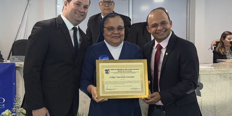 Nesta segunda-feira (30), a Câmara de Vereadores de Serra Talhada realizou uma sessão solene em homenagem aos 80 anos do Colégio Imaculada Conceição (CIC). A iniciativa, promovida por todos os parlamentares, reconheceu a importante contribuição da instituição para a educação no município e em toda a região do Sertão do Pajeú.
