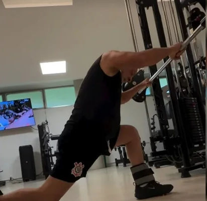 Nas imagens, Lula veste uma bermuda do Corinthians, time para o qual torce, e realiza um exercício de pernas com pesos.