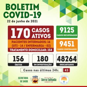A Secretaria de Saúde de Serra Talhada informa no boletim epidemiológico desta terça-feira (22/06) que o município atingiu a marca dos 9.125 pacientes ...