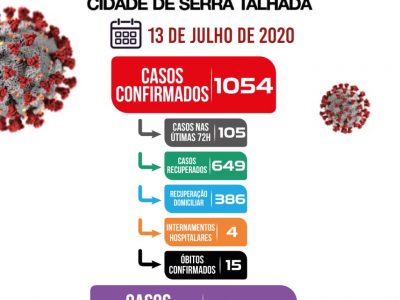 A Secretaria de Saúde de Serra Talhada informa que foram confirmados mais 105 casos positivos de Covid-19, totalizando 1.054 casos no município. Os ...