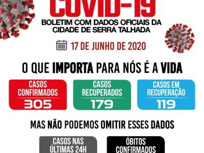 A Secretaria de Saúde de Serra Talhada informa que foram confirmados mais 19 casos positivos de Covid-19 nesta quarta-feira (17), totalizando 305 casos. ...